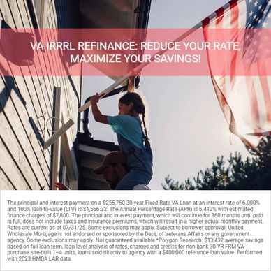 VA IRRRL Streamline Refinance: Lower your interest rate and potentially reduce your monthly mortgage payments quickly and easily with our IRRRL streamline refinance option, designed specifically for homeowners with existing VA loans.